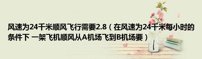 大家好,小联来为大家解答以上的问题。风速为24千米顺风飞行需要2.8,在风速为24千米每小时的条件下 一架飞机顺风从A机场飞到B机场要这个很多人还不知道,现在让我们一起来看看吧!