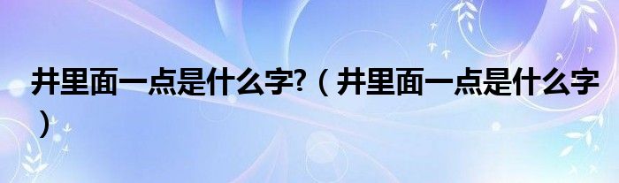 大家好,小联来为大家解答以上的问题。井里面一点是什么字?,井里面一点是什么字这个很多人还不知道,现在让我们一起来看看吧!