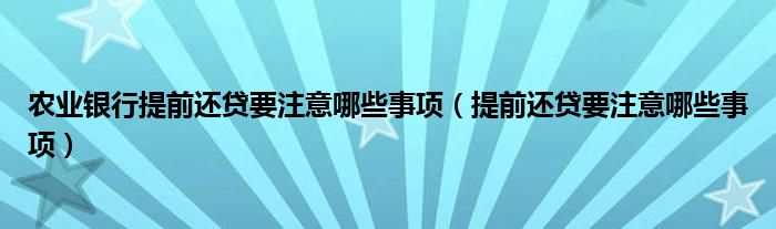 关于农业银行提前还贷要注意哪些事项,提前还贷要注意哪些事项这个很多人还不知道,今天菲菲来为大家解答以上的问题,现在让我们一起来看看吧!