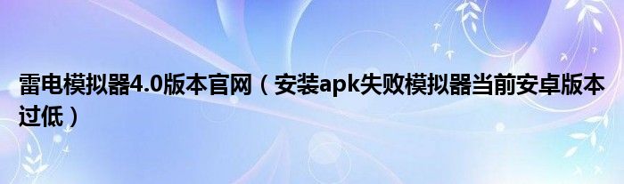 大家好,小联来为大家解答以上的问题。雷电模拟器4.0版本官网,安装apk失败模拟器当前安卓版本过低这个很多人还不知道,现在让我们一起来看看吧!