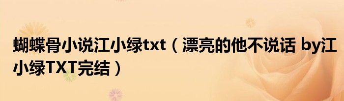 关于蝴蝶骨小说江小绿txt,漂亮的他不说话 by江小绿TXT完结这个很多人还不知道,今天菲菲来为大家解答以上的问题,现在让我们一起来看看吧!
