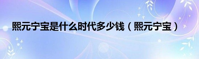 熙元宁宝是什么时代多少钱(熙元宁宝)