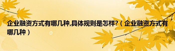 大家好,小联来为大家解答以上的问题。企业融资方式有哪几种,具体规则是怎样?,企业融资方式有哪几种这个很多人还不知道,现在让我们一起来看看吧!