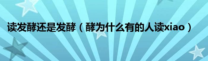 大家好,小晋来为大家解答以下问题,关于读发酵还是发酵,酵为什么有的人读xiao很多人还不知道,今天让我们一起来看看吧!