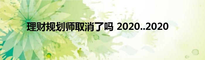 大家好,小联来为大家解答以上的问题。理财规划师取消了吗 2020..2020这个很多人还不知道,现在让我们一起来看看吧!