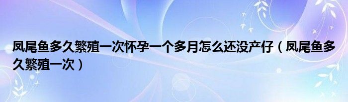 大家好,我是小科,我来为大家解答以上问题。凤尾鱼多久繁殖一次怀孕一个多月怎么还没产仔,凤尾鱼多久繁殖一次很多人还不知道,现在让我们一起来看看吧!