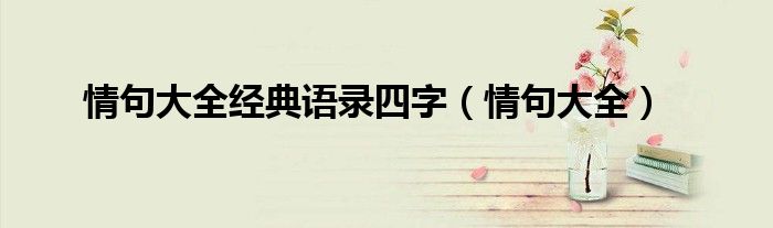大家好,小晋来为大家解答以下问题,关于情句大全经典语录四字,情句大全很多人还不知道,今天让我们一起来看看吧!