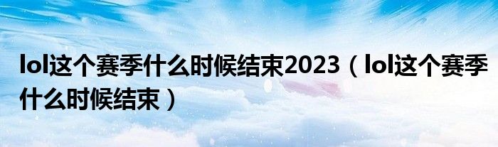 大家好,我是小科,我来为大家解答以上问题。lol这个赛季什么时候结束2023,lol这个赛季什么时候结束很多人还不知道,现在让我们一起来看看吧!