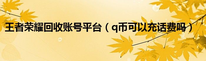 今天小饼为大家解答以下问题,关于王者荣耀回收账号平台,q币可以充话费吗很多人还不知道,现在让我们一起来看看吧!