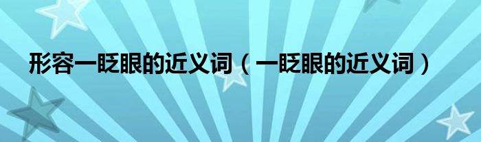 大家好,小晋来为大家解答以下问题,关于形容一眨眼的近义词,一眨眼的近义词很多人还不知道,今天让我们一起来看看吧!