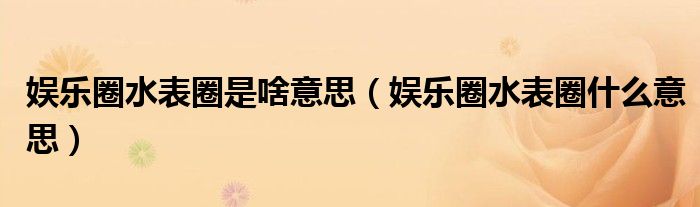 娱乐圈水表圈是啥意思(娱乐圈水表圈什么意思)