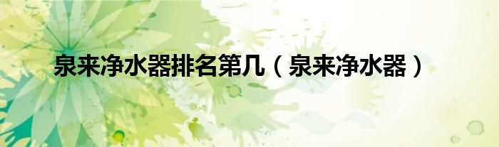 大家好,来宝来为大家解答以下问题,泉来净水器排名第几,泉来净水器很多人还不知道,今天让我们一起来看看吧!