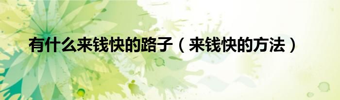 大家好,小晋来为大家解答以下问题,关于有什么来钱快的路子,来钱快的方法很多人还不知道,今天让我们一起来看看吧!