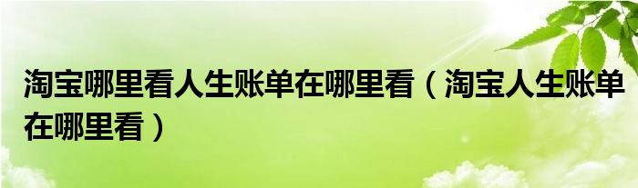 大家好,来宝来为大家解答以下问题,淘宝哪里看人生账单在哪里看,淘宝人生账单在哪里看很多人还不知道,今天让我们一起来看看吧!