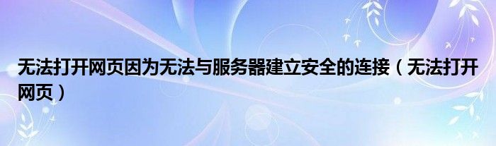 大家好,来宝来为大家解答以下问题,无法打开网页因为无法与服务器建立安全的连接,无法打开网页很多人还不知道,今天让我们一起来看看吧!