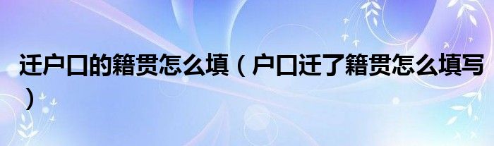 大家好,小晋来为大家解答以下问题,关于迁户口的籍贯怎么填,户口迁了籍贯怎么填写很多人还不知道,今天让我们一起来看看吧!