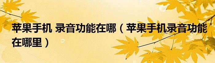 1、在日常生活中使用手机的时候,总会遇到想要录音、录歌的时候,所以需要使用手机的录音功能。一般智能手机都有录音功能,苹果手机也有,但是很多人找不到苹果手机的录音功能,很多人需要录音的时候也不知道该怎么办。苹果手机录音功能在哪里呢?首先,我们来看看如何找到苹果手机的录音功能,以及如何使用这个功能。