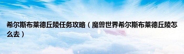 希尔斯布莱德丘陵任务攻略(魔兽世界希尔斯布莱德丘陵怎么去)