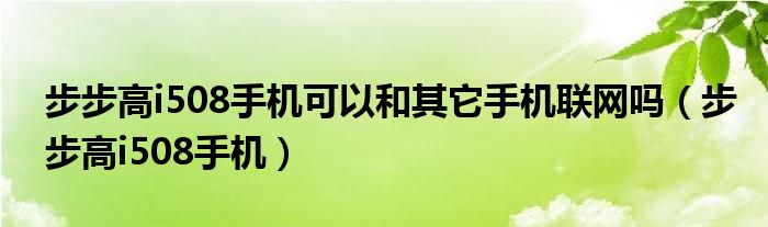 大家好,来宝来为大家解答以下问题,步步高i508手机可以和其它手机联网吗,步步高i508手机很多人还不知道,今天让我们一起来看看吧!