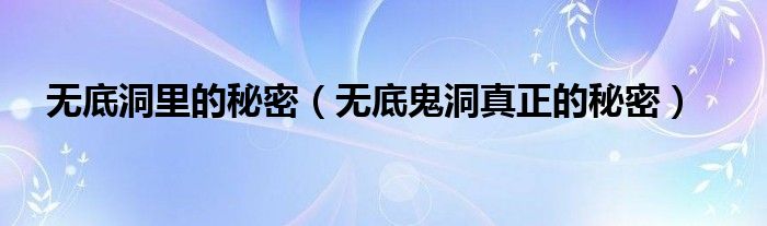 大家好,小晋来为大家解答以下问题,关于无底洞里的秘密,无底鬼洞真正的秘密很多人还不知道,今天让我们一起来看看吧!