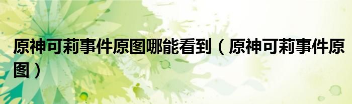大家好,来宝来为大家解答以下问题,原神可莉事件原图哪能看到,原神可莉事件原图很多人还不知道,今天让我们一起来看看吧!