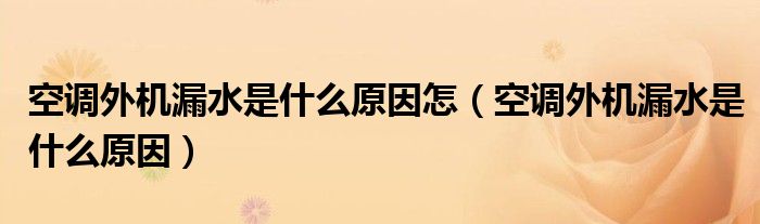 大家好,来宝来为大家解答以下问题,空调外机漏水是什么原因怎,空调外机漏水是什么原因很多人还不知道,今天让我们一起来看看吧!