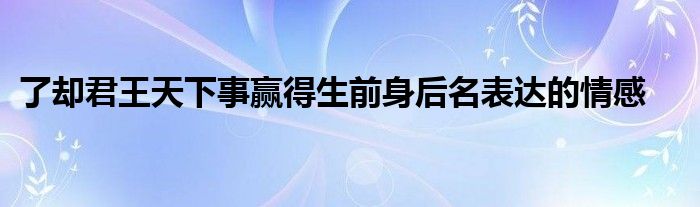 关于了却君王天下事赢得生前身后名表达的情感这个很多人还不知道,今天菲菲来为大家解答以上的问题,现在让我们一起来看看吧!