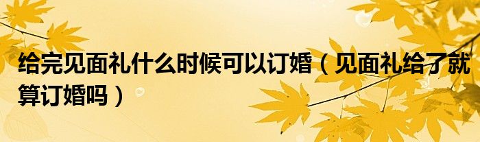 大家好,小晋来为大家解答以下问题,关于给完见面礼什么时候可以订婚,见面礼给了就算订婚吗很多人还不知道,今天让我们一起来看看吧!