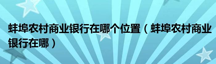 蚌埠农村商业银行在哪个位置(蚌埠农村商业银行在哪)