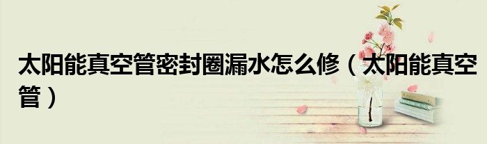 大家好,来宝来为大家解答以下问题,太阳能真空管密封圈漏水怎么修,太阳能真空管很多人还不知道,今天让我们一起来看看吧!