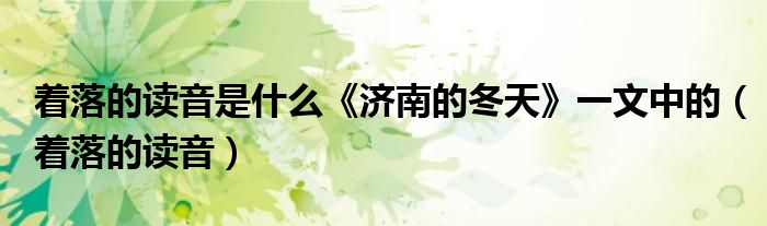 关于着落的读音是什么《济南的冬天》一文中的,着落的读音这个很多人还不知道,今天菲菲来为大家解答以上的问题,现在让我们一起来看看吧!