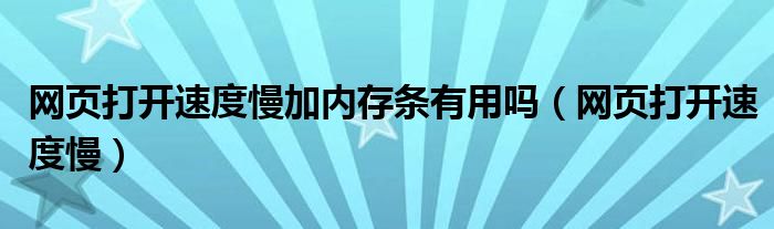大家好,来宝来为大家解答以下问题,网页打开速度慢加内存条有用吗,网页打开速度慢很多人还不知道,今天让我们一起来看看吧!