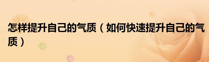 关于怎样提升自己的气质,如何快速提升自己的气质这个很多人还不知道,今天菲菲来为大家解答以上的问题,现在让我们一起来看看吧!