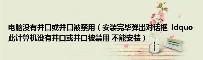 关于电脑没有并口或并口被禁用,安装完毕弹出对话框 ldquo 此计算机没有并口或并口被禁用 不能安装这个很多人还不知道,今天菲菲来为大家解答以上的问题,现在让我们一起来看看吧!
