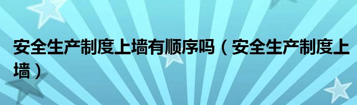 关于安全生产制度上墙有顺序吗,安全生产制度上墙这个很多人还不知道,今天菲菲来为大家解答以上的问题,现在让我们一起来看看吧!