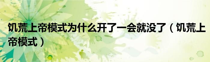 大家好,小晋来为大家解答以下问题,关于饥荒上帝模式为什么开了一会就没了,饥荒上帝模式很多人还不知道,今天让我们一起来看看吧!