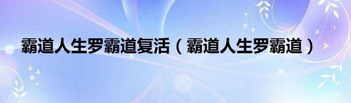 关于霸道人生罗霸道复活,霸道人生罗霸道这个很多人还不知道,今天菲菲来为大家解答以上的问题,现在让我们一起来看看吧!