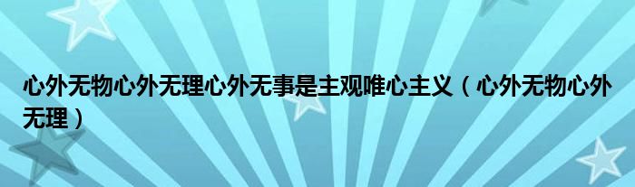 心外无物心外无理心外无事是主观唯心主义(心外无物心外无理)