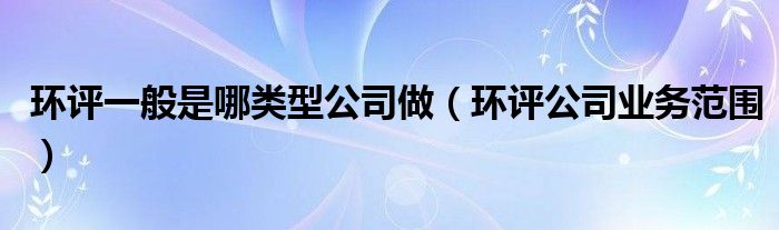 关于环评一般是哪类型公司做,环评公司业务范围这个很多人还不知道,今天菲菲来为大家解答以上的问题,现在让我们一起来看看吧!