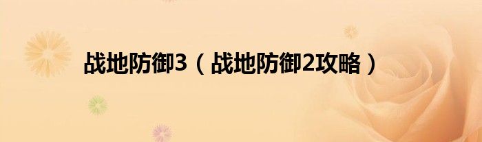 战地防御3,战地防御2攻略这个很多人还不知道,小飞来为大家解答以上的问题。现在让我们一起来看看吧!