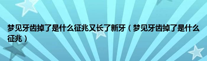 梦见牙齿掉了是什么征兆又长了新牙,梦见牙齿掉了是什么征兆这个很多人还不知道,小飞来为大家解答以上的问题。现在让我们一起来看看吧!