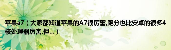 大家好,小常来为大家解答以上问题。苹果a7,大家都知道苹果的A7很厉害,跑分也比安卓的很多4核处理器厉害,但...很多人还不知道,现在让我们一起来看看吧!