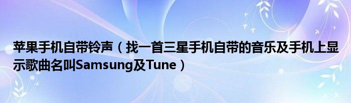 大家好,小常来为大家解答以上问题。苹果手机自带铃声,找一首三星手机自带的音乐及手机上显示歌曲名叫Samsung及Tune很多人还不知道,现在让我们一起来看看吧!
