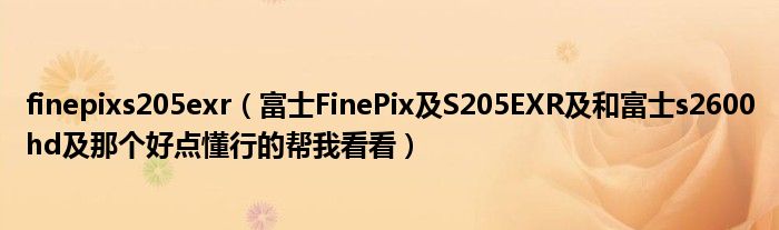大家好,小常来为大家解答以上问题。finepixs205exr,富士FinePix及S205EXR及和富士s2600hd及那个好点懂行的帮我看看很多人还不知道,现在让我们一起来看看吧!