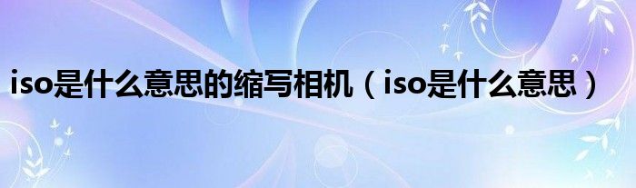 关于iso是什么意思的缩写相机,iso是什么意思这个很多人还不知道,今天菲菲来为大家解答以上的问题,现在让我们一起来看看吧!