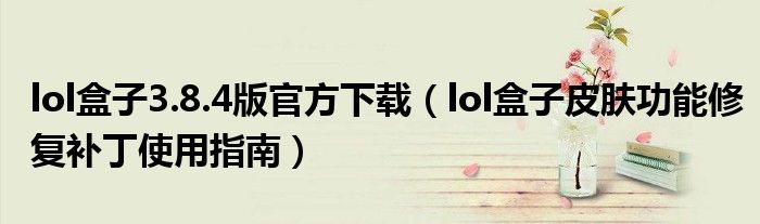 大家好,今天小悦来为大家解答以上问题。lol盒子3.8.4版官方下载,lol盒子皮肤功能修复补丁使用指南很多人还不知道,现在让我们一起来看看吧!