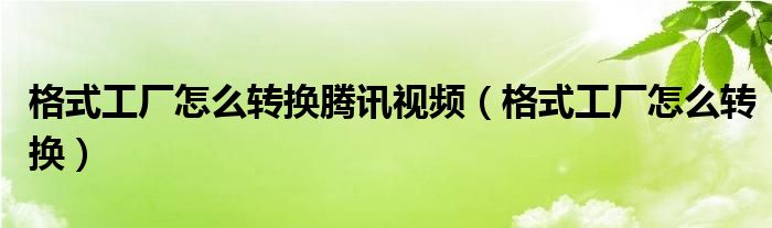 大家好,小飞来为大家解答以上问题,格式工厂怎么转换腾讯视频,格式工厂怎么转换很多人还不知道,现在让我们一起来看看吧!