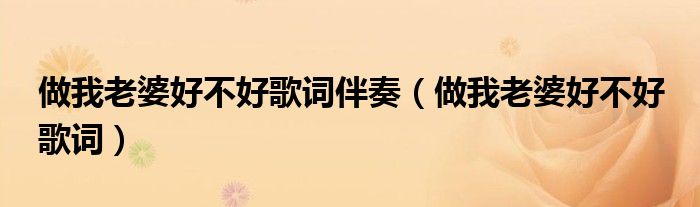 做我老婆好不好歌词伴奏,做我老婆好不好 歌词这个很多人还不知道,小飞来为大家解答以上的问题。现在让我们一起来看看吧!