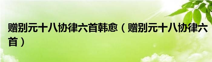 赠别元十八协律六首韩愈,赠别元十八协律六首这个很多人还不知道,小飞来为大家解答以上的问题。现在让我们一起来看看吧!