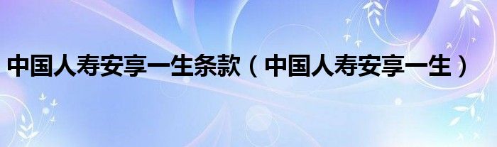 中国人寿安享一生条款,中国人寿安享一生这个很多人还不知道,小飞来为大家解答以上的问题。现在让我们一起来看看吧!